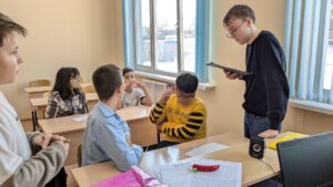 Ученики начальных классов прошли Урок цифры по теме «Магазин приложений». В рамках занятия учащиеся ближе познакомились с востребованными профессиями в IT: разработчиком, дизайнером, копирайтером, модератором и специалистом поддержки. Дети узнали, как разработчики работают с консолью, дизайнеры создают удобный интерфейс, копирайтеры пишут вовлекающие тексты, модераторы следят за безопасностью контента, а специалисты поддержки помогают пользователям находить ответы на их вопросы.
