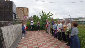 3 сентября учащиеся и педагоги ГБОУ СОШ им.Ф.Н.Ижедерова с.Рысайкино приняли участие во Всероссийской акции «Капля жизни», посвященной Дню солидарности в борьбе с терроризмом. Акция приурочена к датам трагических событий, произошедших в первые сентябрьские дни 2004 года в Беслане. Тогда, во время террористического акта в школе № 1, погибли несколько сотен человек. Все три дня, находясь в заточении, заложники не могли выпить ни капли воды… Мы набрали воду из чаши в ладони и полили из рук цветы рядом со значимыми местами нашего села – таким образом символически напоили всех тех, кого уже нет с нами. (См. видео >>>)