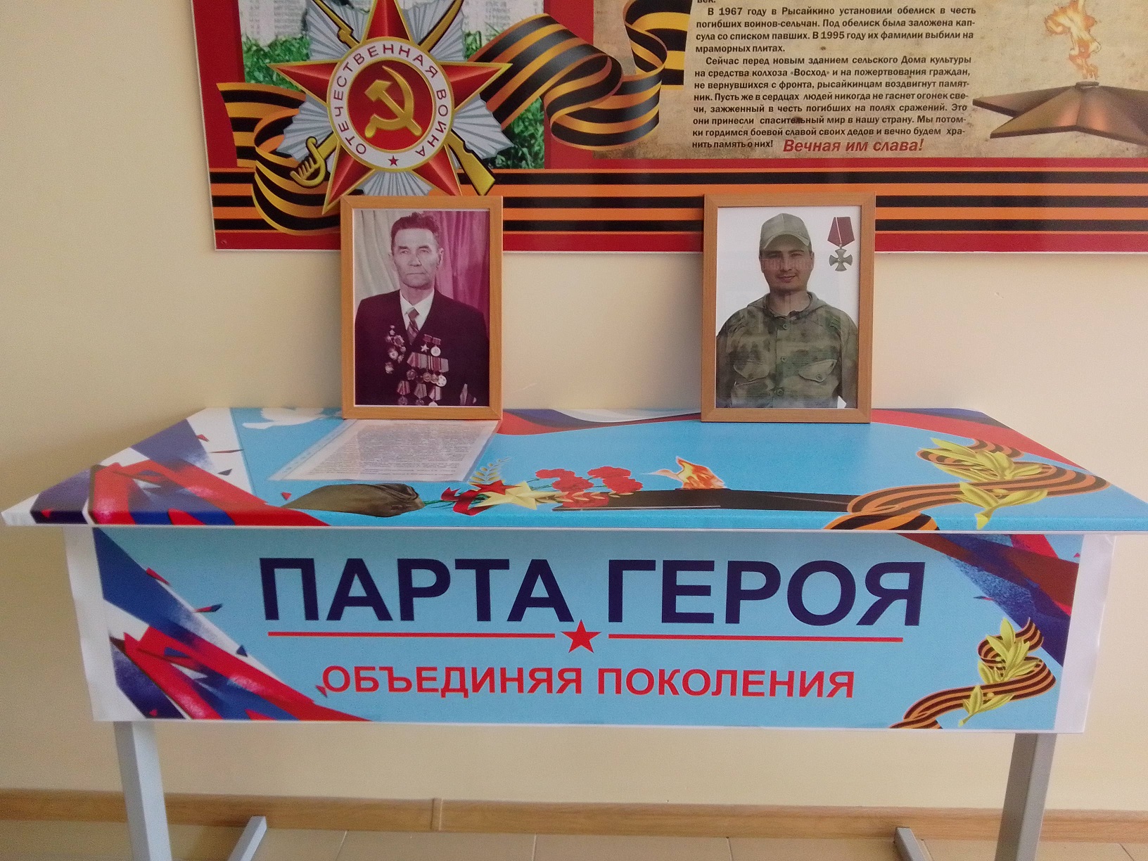 23 июня в школе состоялось знаменательное событие — открытие «Парты Героя». Проект реализуется во многих регионах страны по инициативе партии «Единая Россия». «Парта Героя» — это ученический стол, на котором размещена фотография героя, информация о фактах его биографии и заслугах. Право сидеть за такой партой получают ученики школы, имеющие успехи в учёбе, а также за активное участие в различных мероприятиях. Парту Героя посвятили уроженцу села Рысайкино Герою Советского Союза Ижедерову Фёдору Николаевичу, чье имя носит школа, и выпускнику школы Ильину Роману Александровичу, погибшему при выполнении боевой задачи в специальной военной операции на Украине, награждённому орденом Мужества. В словах выступающих единой нитью прошла мысль о том, как важно уважительно относиться к истории нашего Отечества, героическому прошлому и настоящему нашей страны, беречь память о погибших героях боевых действий, защищавших нашу Родину. Сегодня в школе открыта «Парта Героя», памятный знак, который вновь и вновь будет напоминать нам о воинской доблести, славе и чести, о героизме наших земляков.